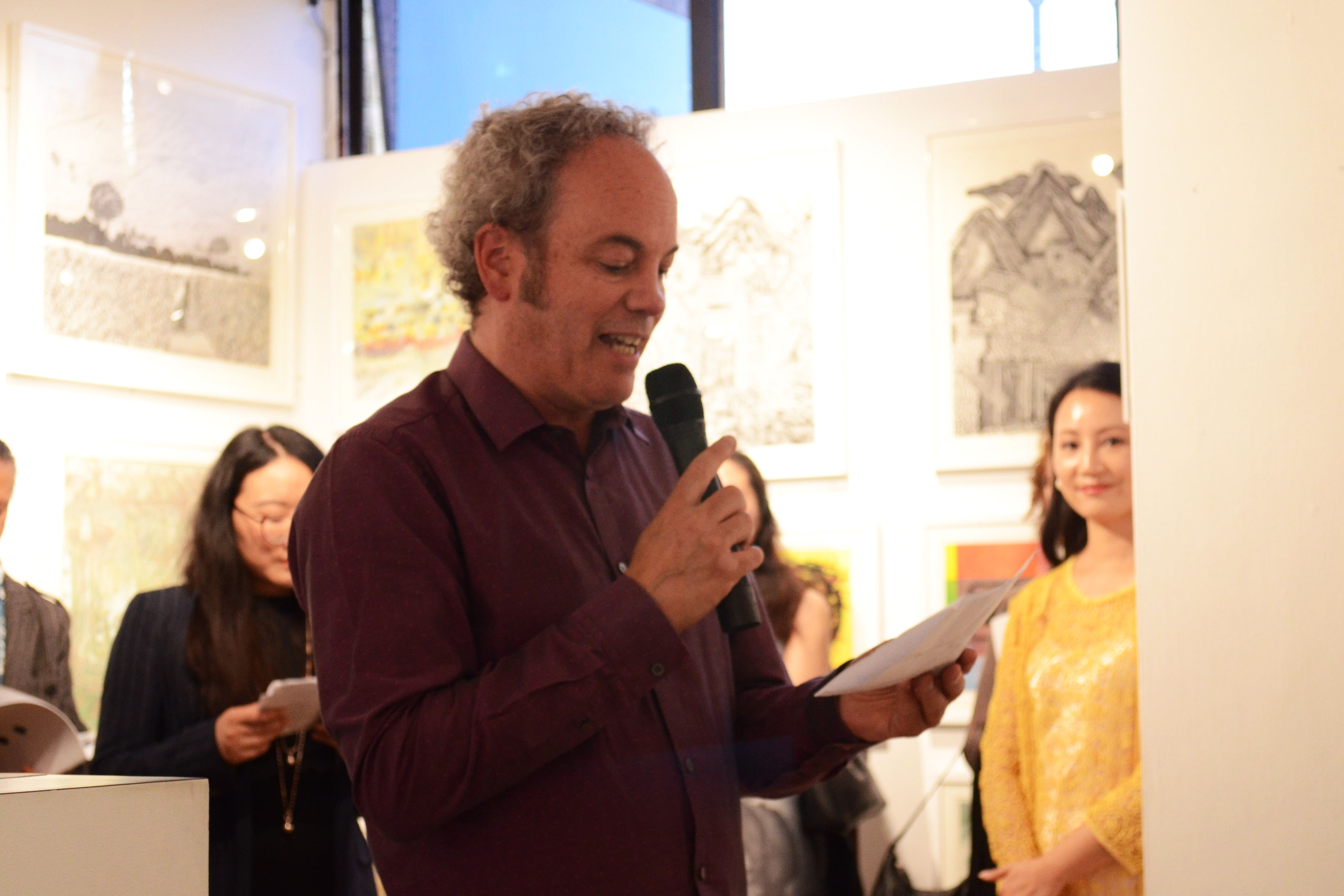 畫展開幕儀式上,英國皇家版畫家協(xié)會主席Michael Barratt、江蘇省美術(shù)館館長徐惠泉、愛濤文化集團常務(wù)副總經(jīng)理陳云梅分別致辭,并向參展本次版畫展的中英藝術(shù)家代表頒發(fā)了參展證書。